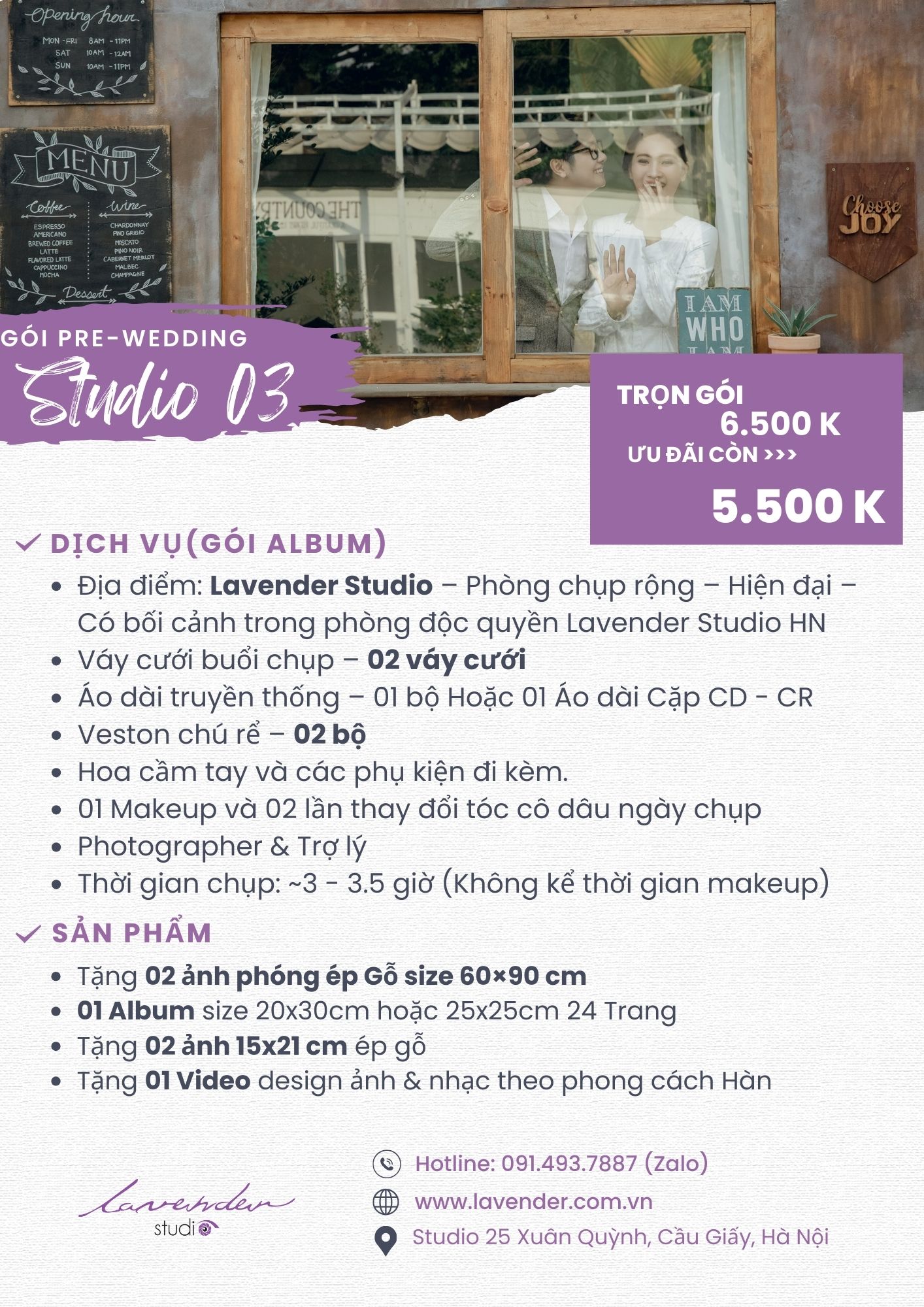 | Để thuận tiện hơn cho việc đặt lịch chụp hình và thanh toán, Quý khách có thể chuyển khoản đặt lịch trước qua Zalo Hotline: 091.493.7887 |
