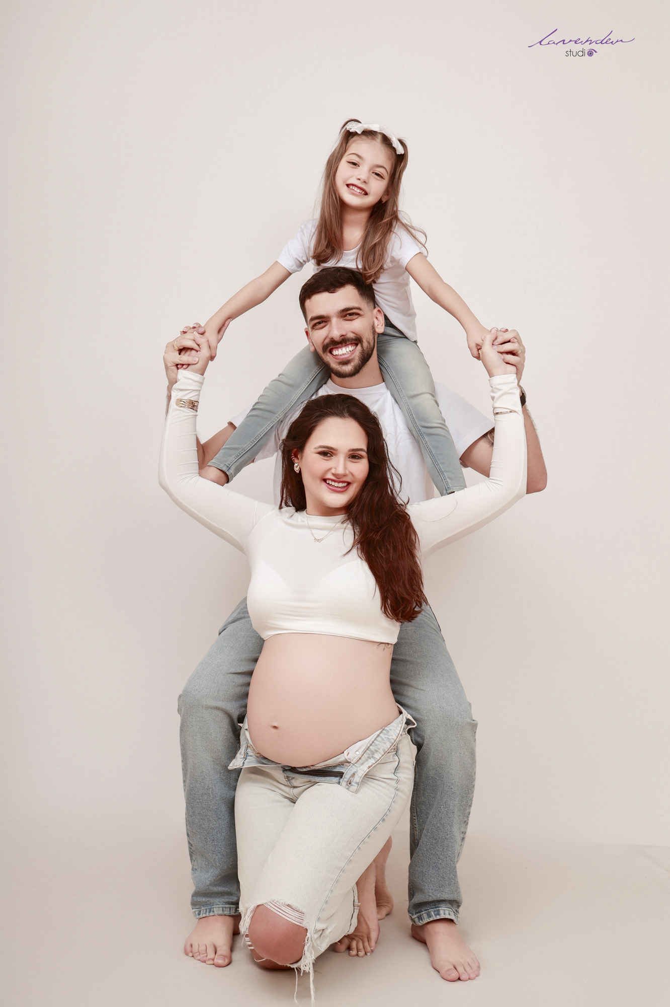 - Trang phục khách hàng chuẩn bị theo tư vấn. (Gợi ý: 1 – 2 bộ váy bầu, 02 áo sơ mi trắng (cho cả bố và mẹ), 01 quần bò (không phải quần bầu), đồ sơ sinh của em bé (1 vài đôi tất, đôi giày baby, hình siêu âm, 1 vài bộ quần áo liền, đồ chơi của bé…)